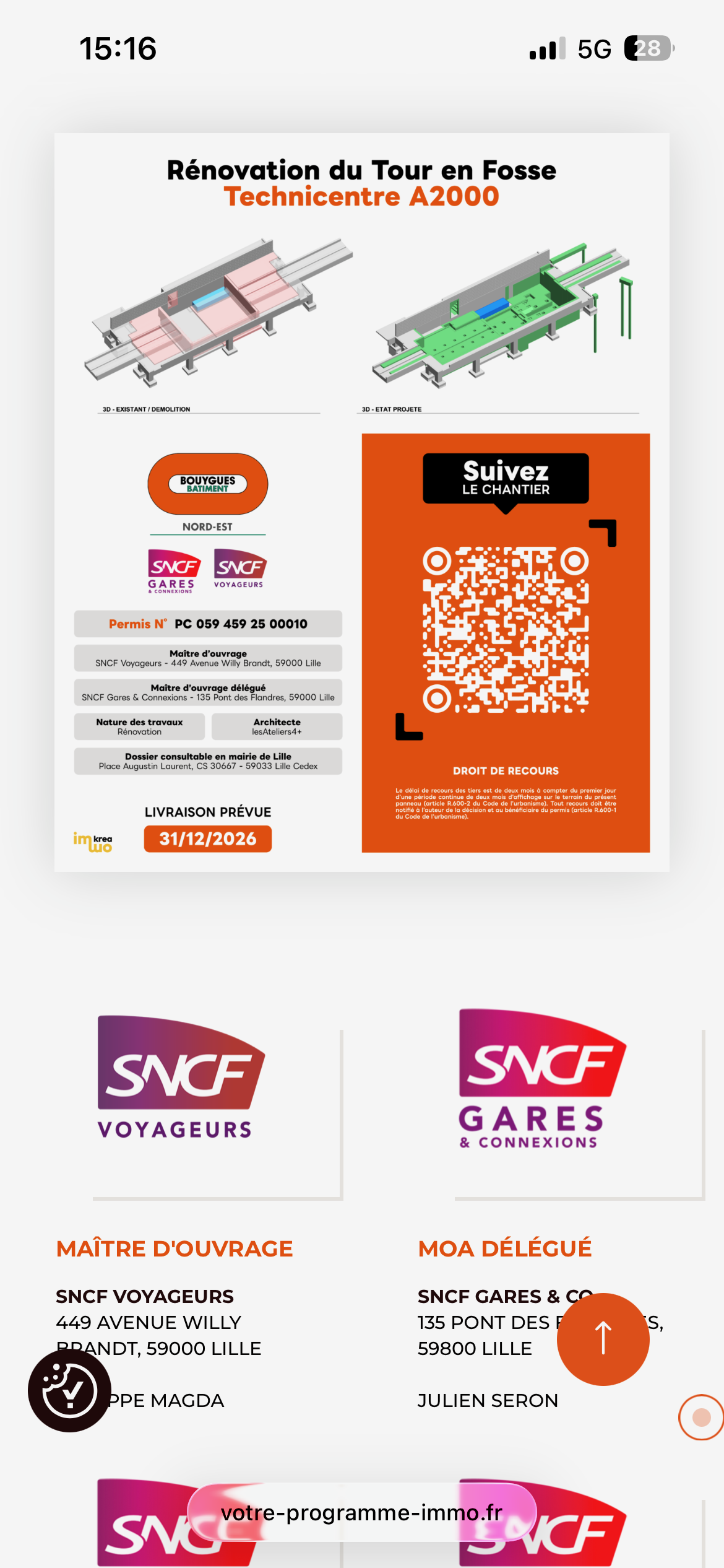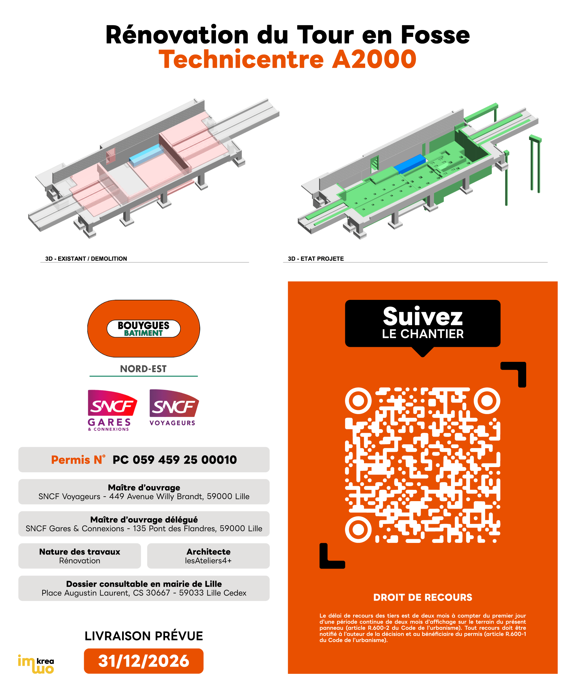 ClientBouygues Bâtiment Nord-EstTravauxRénovation du Tour en FosseLieuTechnicentre A2000 LillePermis n°PC 059 459 25 00010Date15 Avril 2026Share