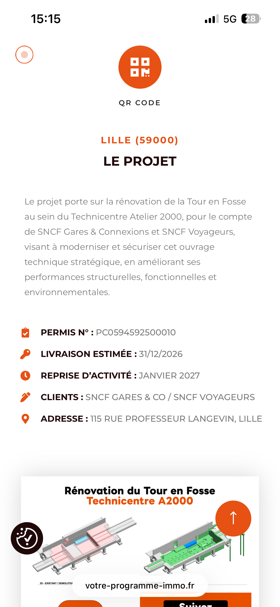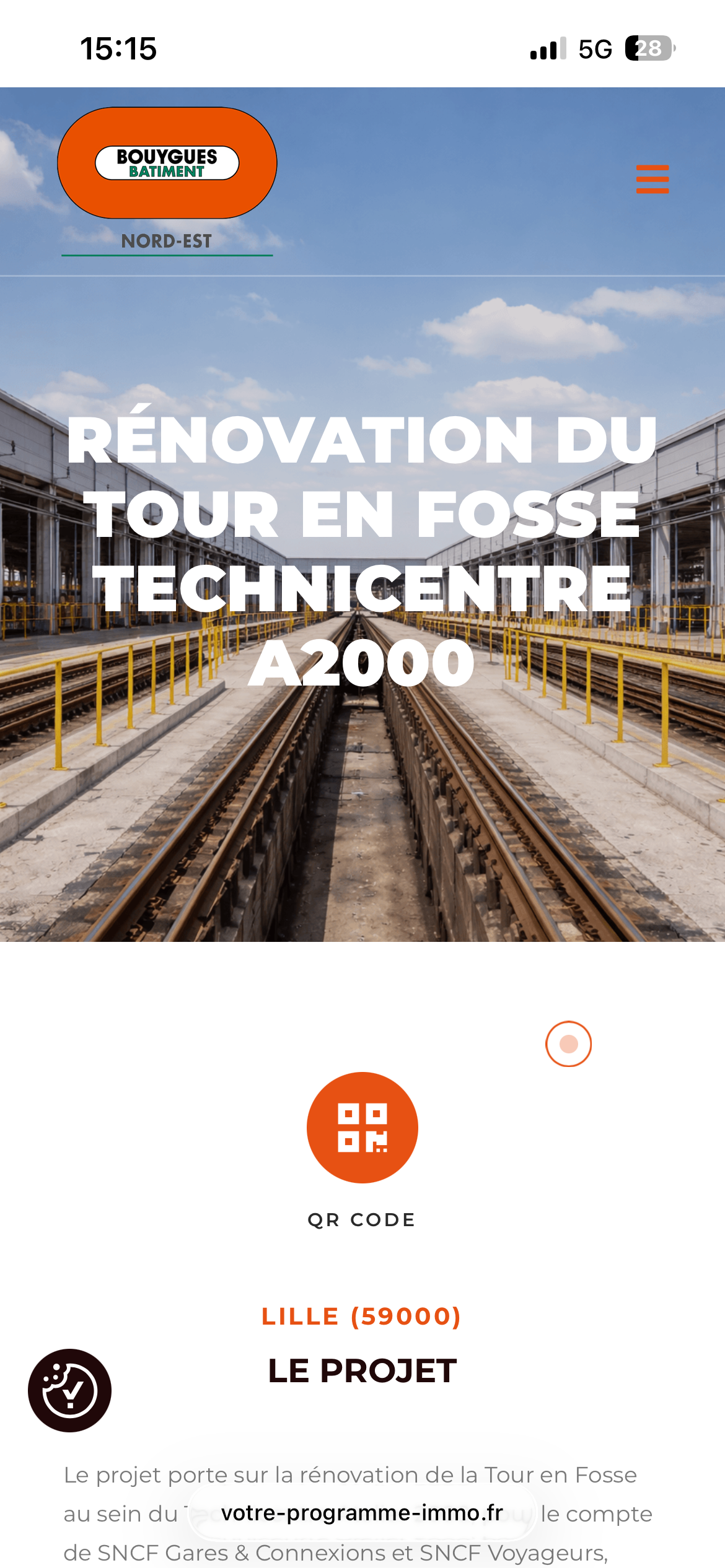 Déploiement d’un panneau de chantier connecté pour Bouygues Bâtiment Nord-Est dans le cadre de la rénovation du Tour en Fosse du Technicentre A2000 de la SNCF. Cette solution digitale ergonomique renforce l’information et la transparence auprès des riverains, partenaires et usagers, grâce à un accès simplifié via QR code 📲 et à la diffusion de données chantier actualisées en temps réel.
